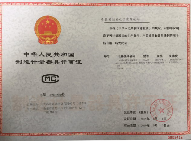 我公司是青島市具有國家質(zhì)量技術監(jiān)督部門頒發(fā)的計量器具生產(chǎn)許可證的生產(chǎn)企業(yè);獲得國家防爆電氣產(chǎn)品質(zhì)量監(jiān)督檢驗中心頒發(fā)的防爆合格證;獲得國家公安部消防產(chǎn)品合格評定中心頒發(fā)的消防產(chǎn)品形式認可證書。